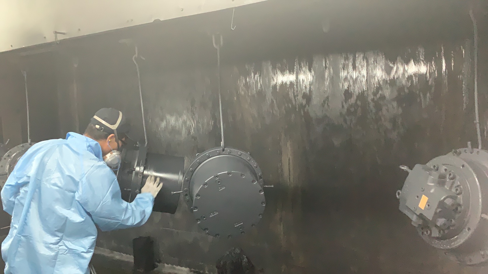 自动喷涂车间的喷粉工位需分别配置两只可自转的不锈钢吊环用于装挂15Kg以下的零件;喷粉室内的风管、电机及设备的开关、灯具、电接触点等应具备防爆功能,且所有金属构件应有专门的防静电接地;每个喷粉室内需配置独立的温度、湿度显示和记录装置。(温度、湿度传感器及记录设备需进行校准)。